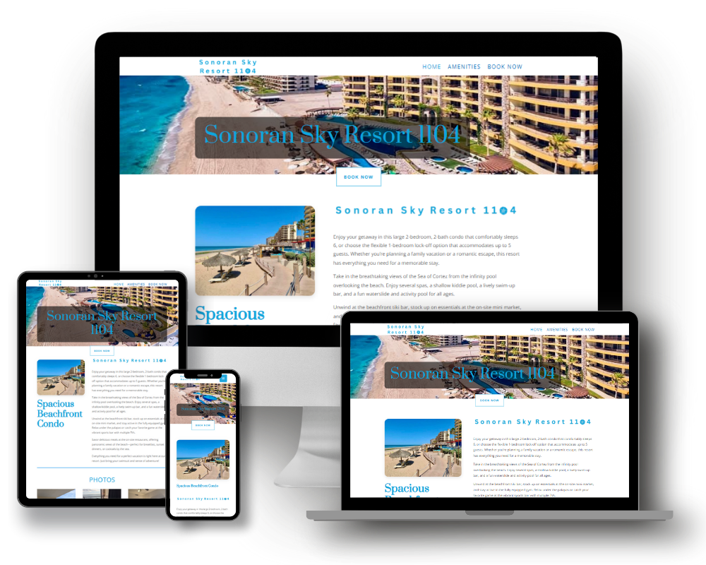 A luxury travel site using high-resolution imagery to drive bookings for spacious, beachside Arizona-owned vacation rentals.